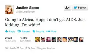 For those not familiar with the details, Sacco sent a short and highly offensive tweet from her personal Twitter account before boarding a 12-hour flight to Africa during which she had no internet access. By the time Sacco landed, the level of fury over her tweet had reached an astounding level and she had lost her job.